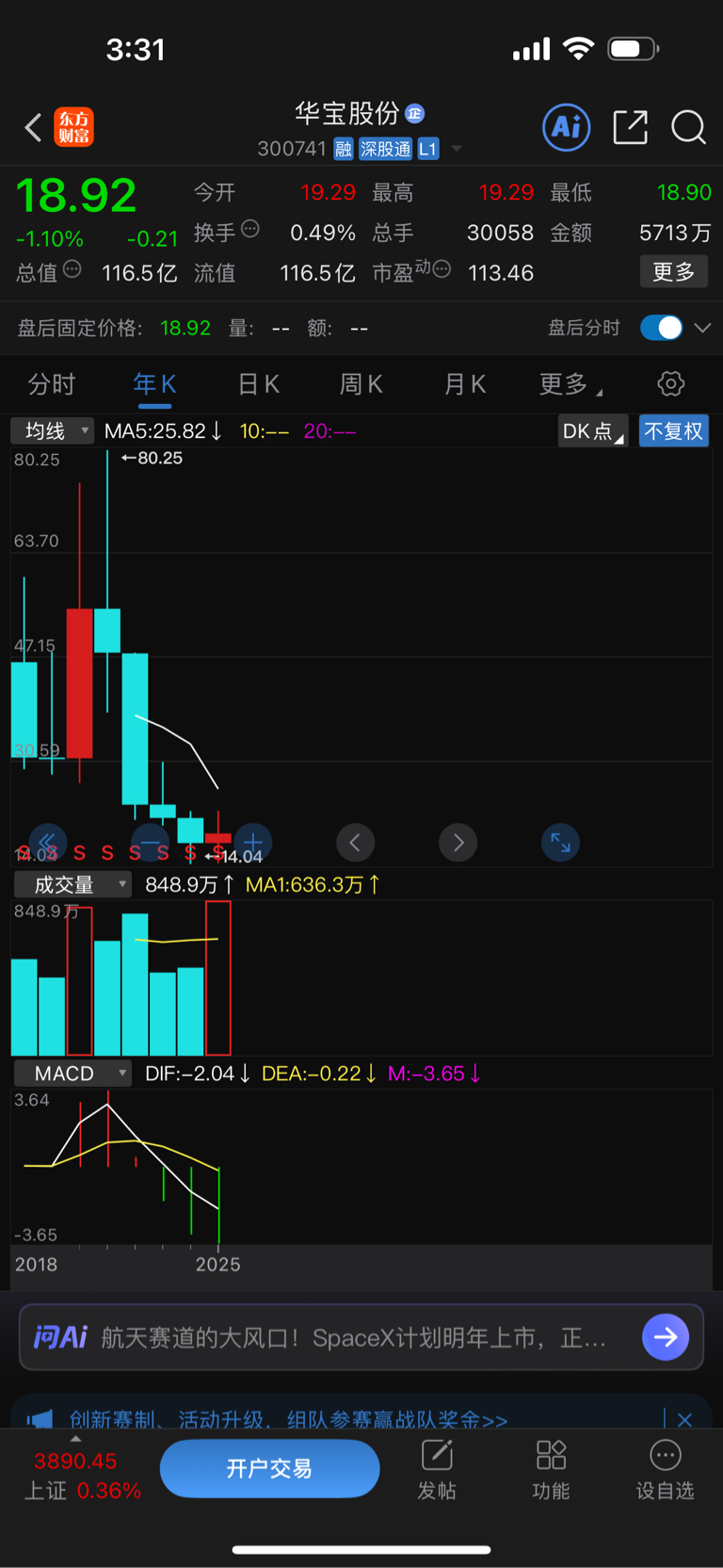 $华宝股份(SZ300741)$ @华宝股份 2021年80.25跌至今日18.92,公司为什么就不能有实质性的利好来维护股价即使创业今年大红55%以上,个股纷纷走3-10倍行情,还是不断配和空方来做空自己赚带血馒头