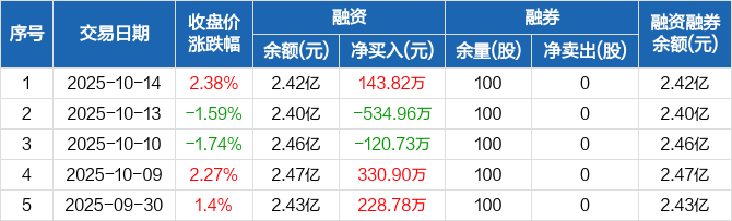 欣锐科技:融资净买入143.82万元,融资余额2.42亿元(10-14)