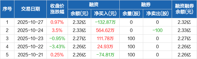 欣锐科技:融资净偿还132.87万元,融资余额2.32亿元(10-27)