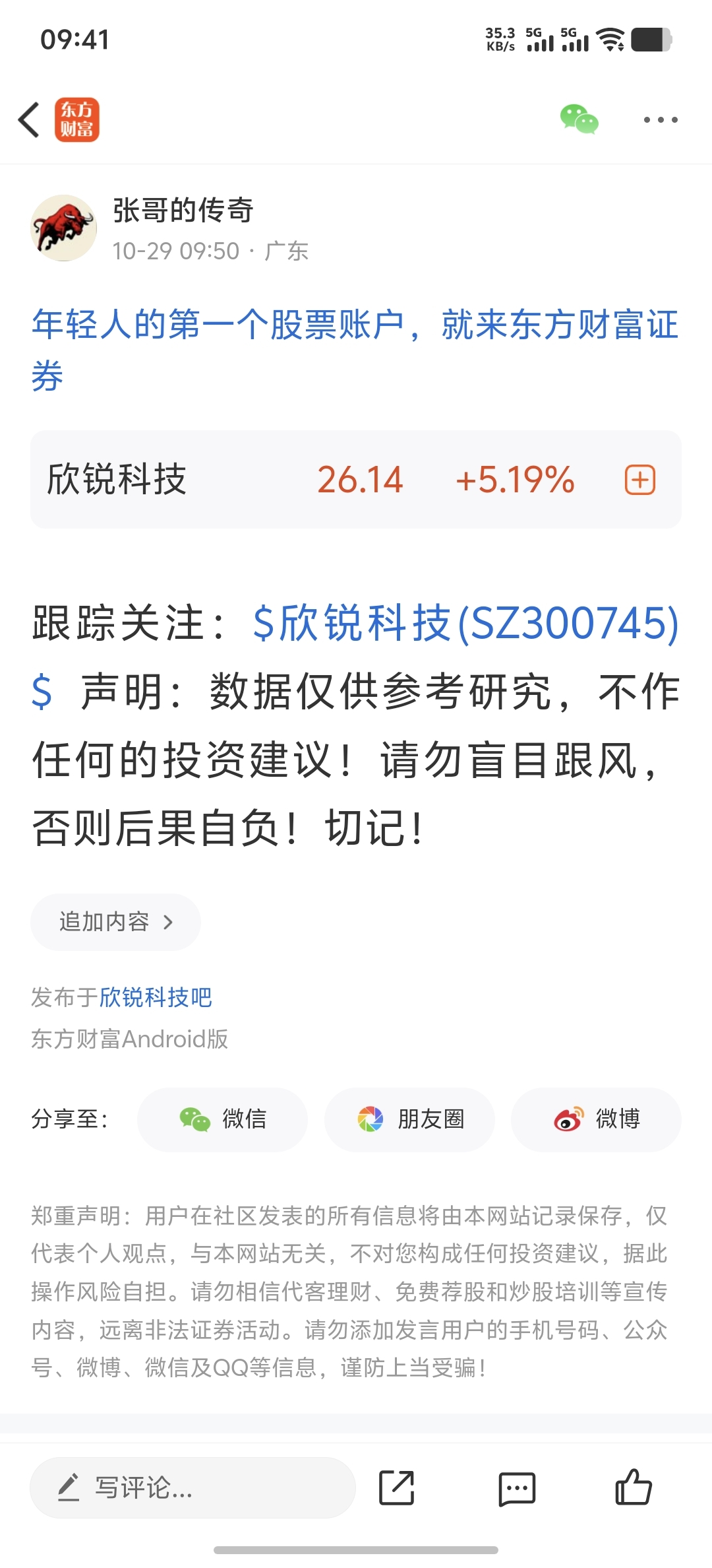 上涨$欣锐科技(SZ300745)$ 老铁们来一波点赞