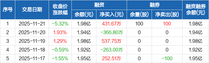 欣锐科技:融资净买入431.67万元,融资余额1.98亿元(11-21)