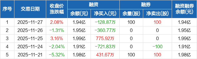 欣锐科技:融资净偿还128.87万元,融资余额1.94亿元(11-27)
