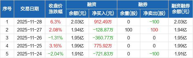 欣锐科技:融资净买入912.49万元,融资余额2.03亿元(11-28)
