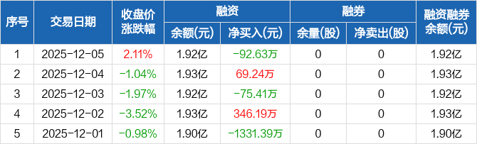 欣锐科技:融资净偿还92.63万元,融资余额1.92亿元(12-05)