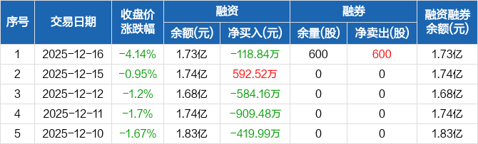 欣锐科技:融资净偿还118.84万元,融资余额1.73亿元(12-16)