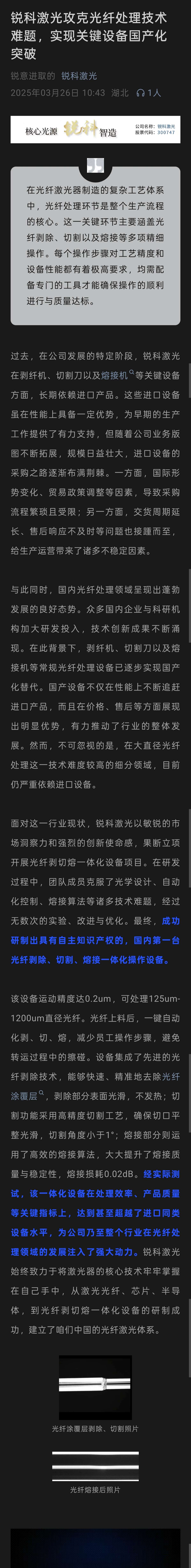 $锐科激光(SZ300747)$