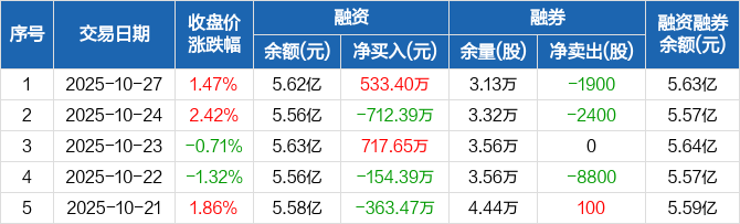 锐科激光:融资净买入533.4万元,融资余额5.62亿元(10-27)