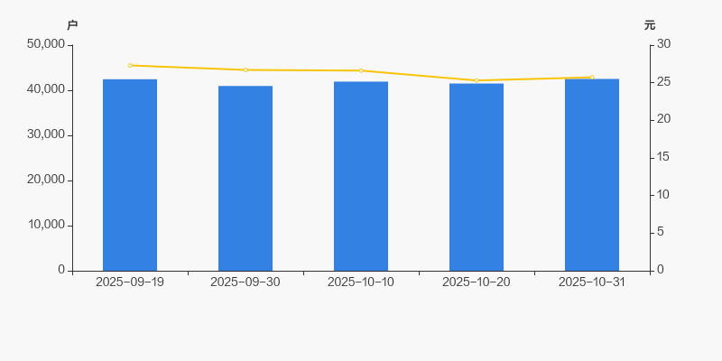 2025年9月19日至今,公司股东户数有所增长,区间涨幅为0.17%。2025年9月19日至2025年10月31日区间股价下降5.79%。