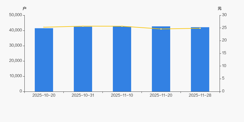 2025年10月20日至今,公司股东户数有所增长,区间涨幅为1.61%。2025年10月20日至2025年11月28日区间股价下降1.66%。