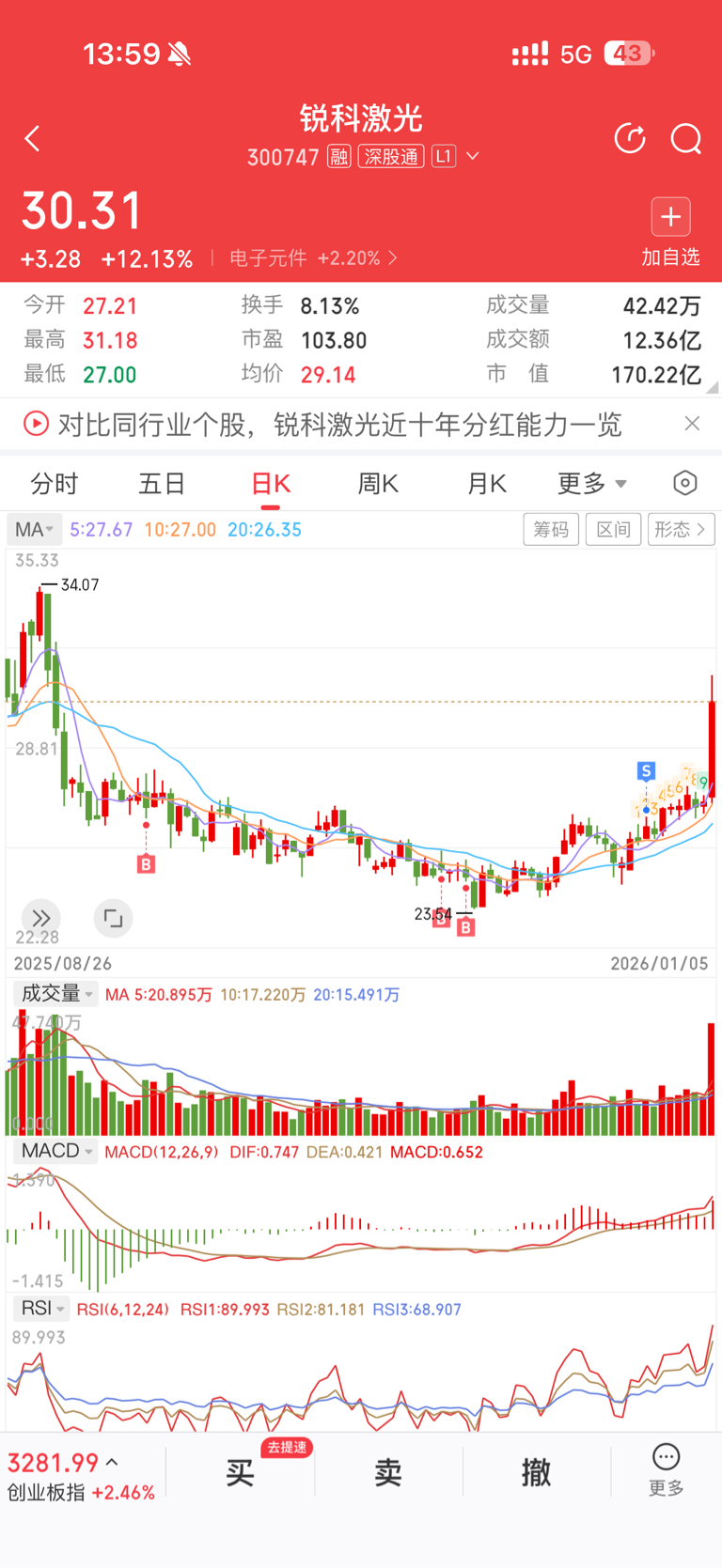 $锐科激光(SZ300747)$ 大腿拍断了