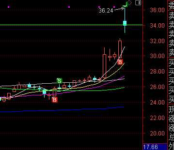 线是34..07,开盘34.52高开超过。理论上就是要高举高打,要强势涨停。辛亏是满仓没有资金了,要不早上就要加仓。但是冲高回落不及预期,诱多的成分很大。就分笔清掉。收盘还刻意收在34下方。短线就不确定了。