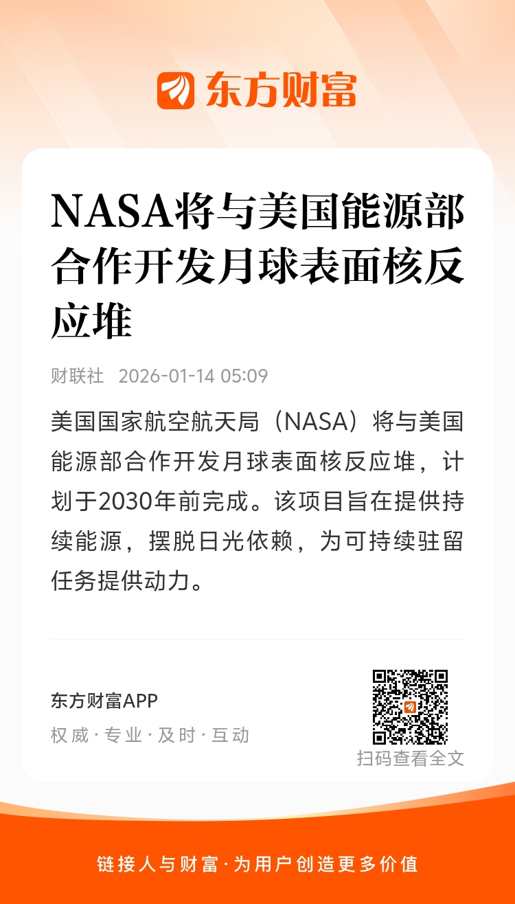 美国国家航空航天局(NASA)将与美国能源部合作开发月球表面核反应堆,计划于2030年前完成。该项目旨在提供持续能源,摆脱日光依赖,为可持续驻留任务提供动力。
