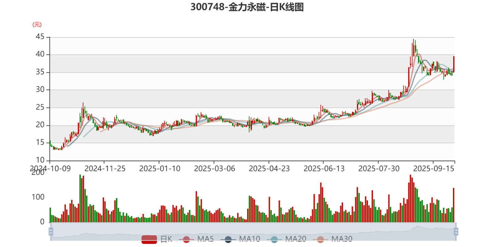 据公告,2025年前三季度,在行业竞争持续加剧的背景下,公司管理层坚持稳健、合规的经营方针,积极拓展市场,通过技术创新、组织优化及精益管理,不断提升运营效率与盈利能力。此外,公司通过灵活调整原材料库存策略等措施,积极应对稀土原材料价格波动风险,保障交付能力获得国内外客户的充分肯定,进一步巩固了经营的稳定性、可持续性。截至目前,公司第四季度在手订单充足。