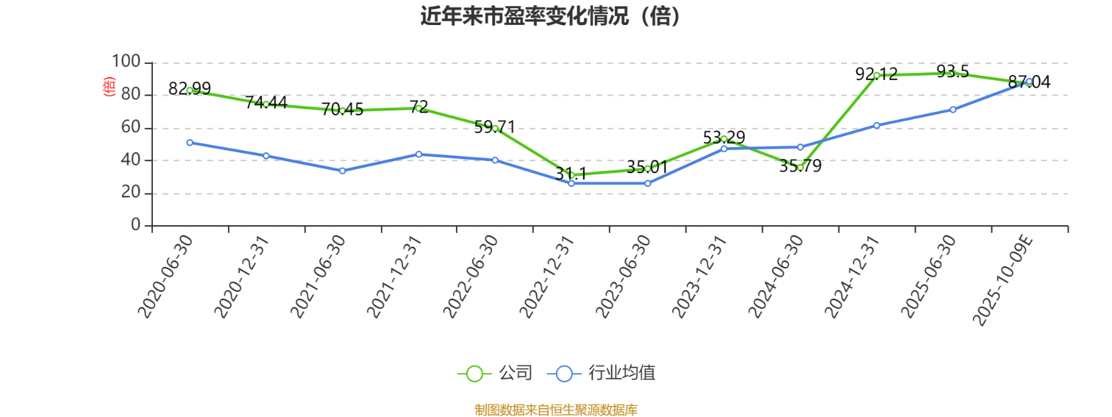 中证智能财讯金力永磁(300748)10月9日晚间披露业绩预告,预计2025年前三季度归母净利润5.05亿元至5.5亿元,同比增长157%-179%;扣非净利润预计4.15亿元至4.6亿元,同比增长365%-415%。以10月9日收盘价计算,金力永磁目前市盈率(TTM)约为83.89倍-90.19倍,市净率(LF)约7.67倍,市销率(TTM)约7.82倍。