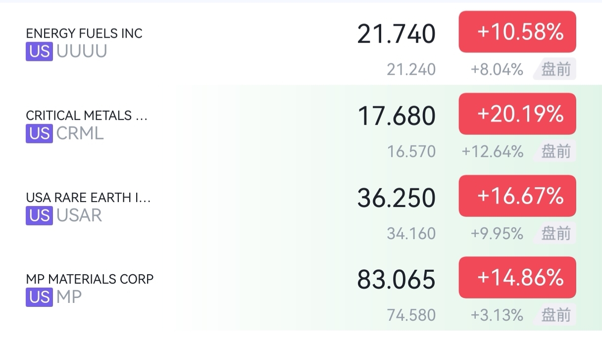 $金力永磁(SZ300748)$ 美股稀土四大股票全部起飞,周一稳了!!
