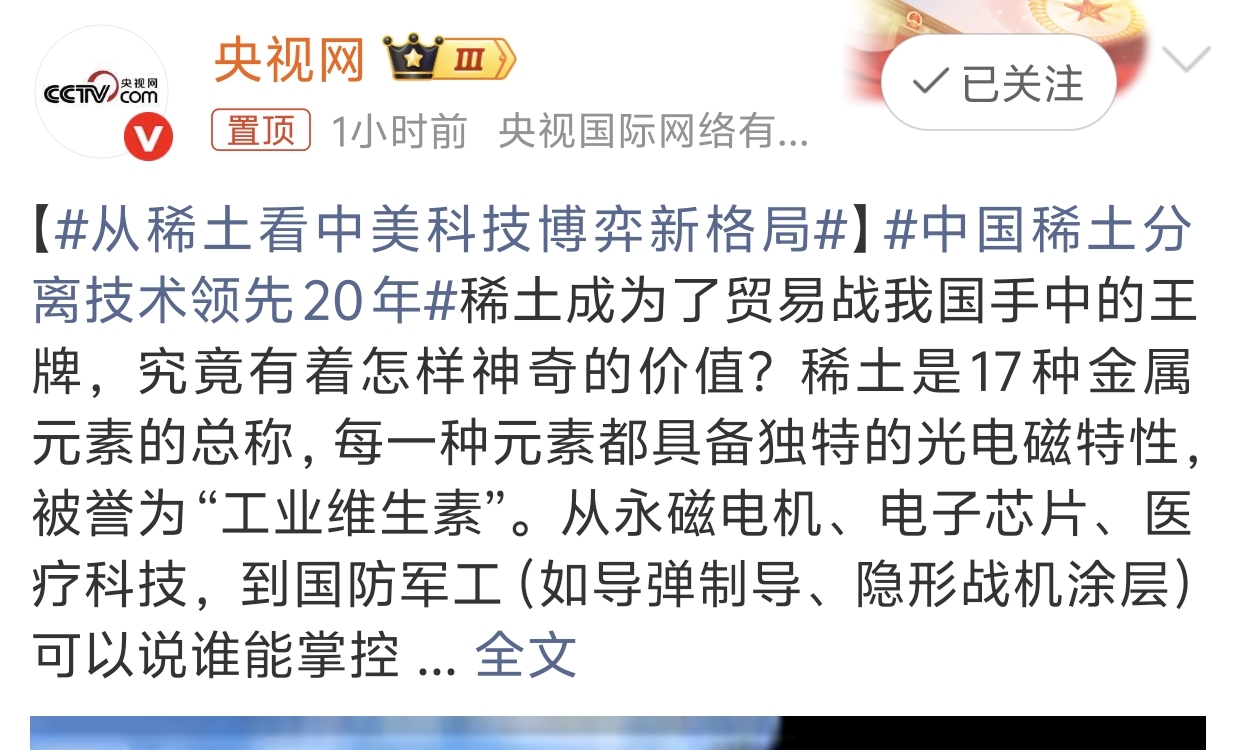 稀土发酵了,这次真的打到对面痛处了,稀土是我们反制对面的最重要底牌