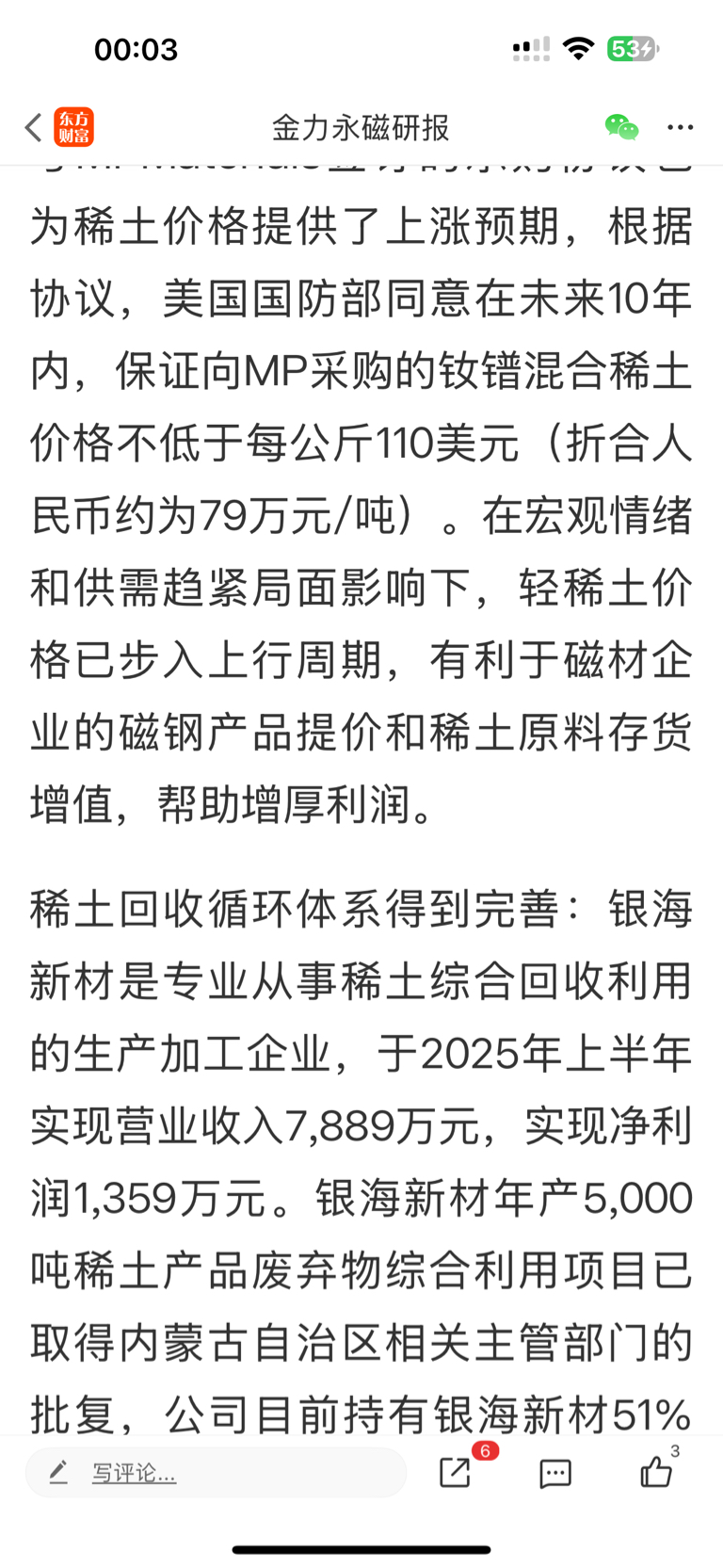 吧里一些喷子在喷,无外乎两条:1、稀土管制了,卖不了怎么有利润2、原材料涨价了,