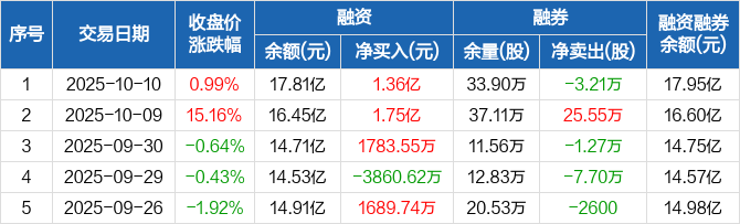 金力永磁:融资余额17.81亿元,创历史新高(10-10)