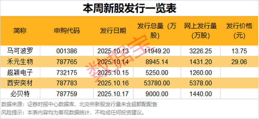 根据发行安排,本周暂有5只新股申购,按所属板块,科创板有3只、沪市主板有1只、深市主板有1只。