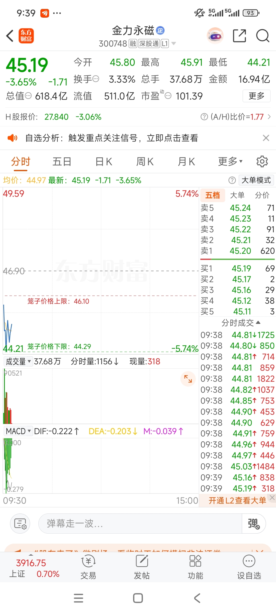 $金力永磁(SZ300748)$ 下沙有承接,一会儿还会起来,但是拉红记得站在卖方