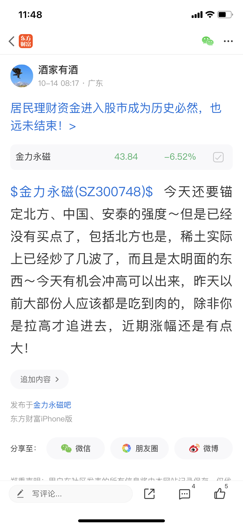 $金力永磁(SZ300748)$ 今天没有买点,冲高出来,可惜我怕冲不起来,负3就砍掉了稀土炒了几波,也成为不了主线,要上车的昨天本来是很好的机会~然后低吸了一点机器人和消费电子,指数在这个位置就是震荡为主,目前没有主线,跌多了就低吸,