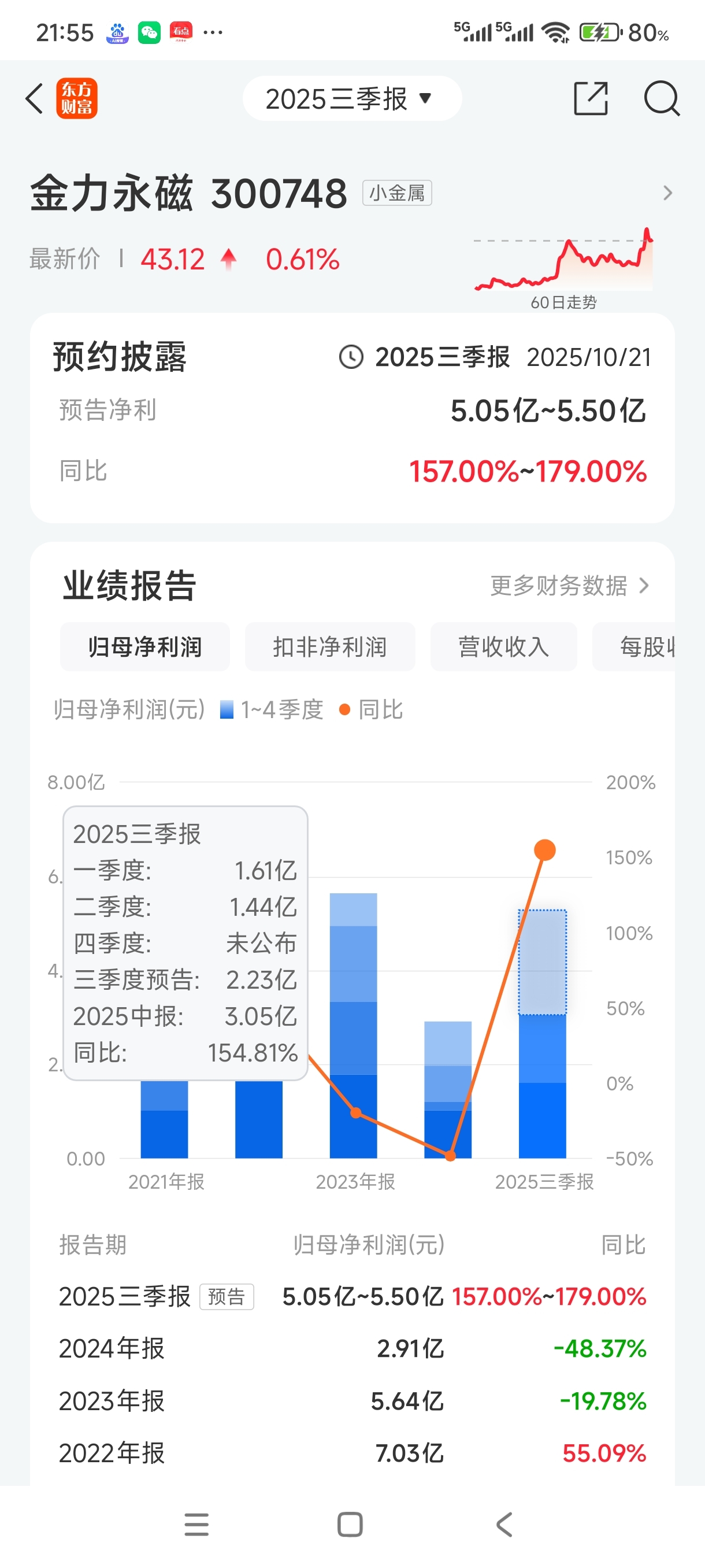 $金力永磁(SZ300748)$ 金力10月20日(下周二)收盘后正式公布三季度业绩。
