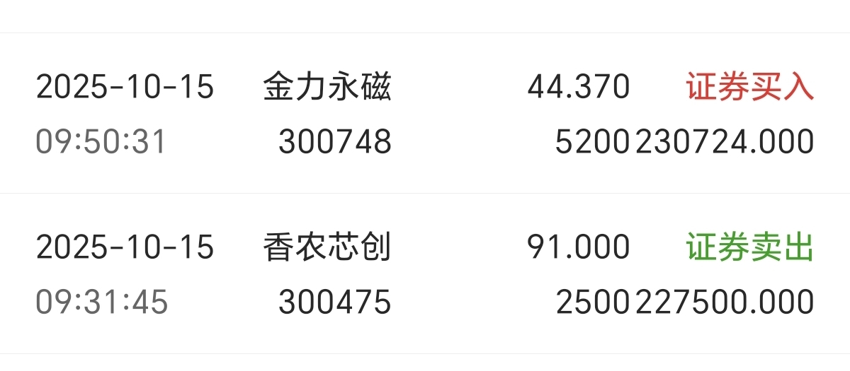 $金力永磁(SZ300748)$ 有我惨吗,昨天卖了香农芯创,买的你,今天香农芯创20cm,在你这儿吃了8cm面,加上香农芯创还有溢价,一来一去四五十个点没了