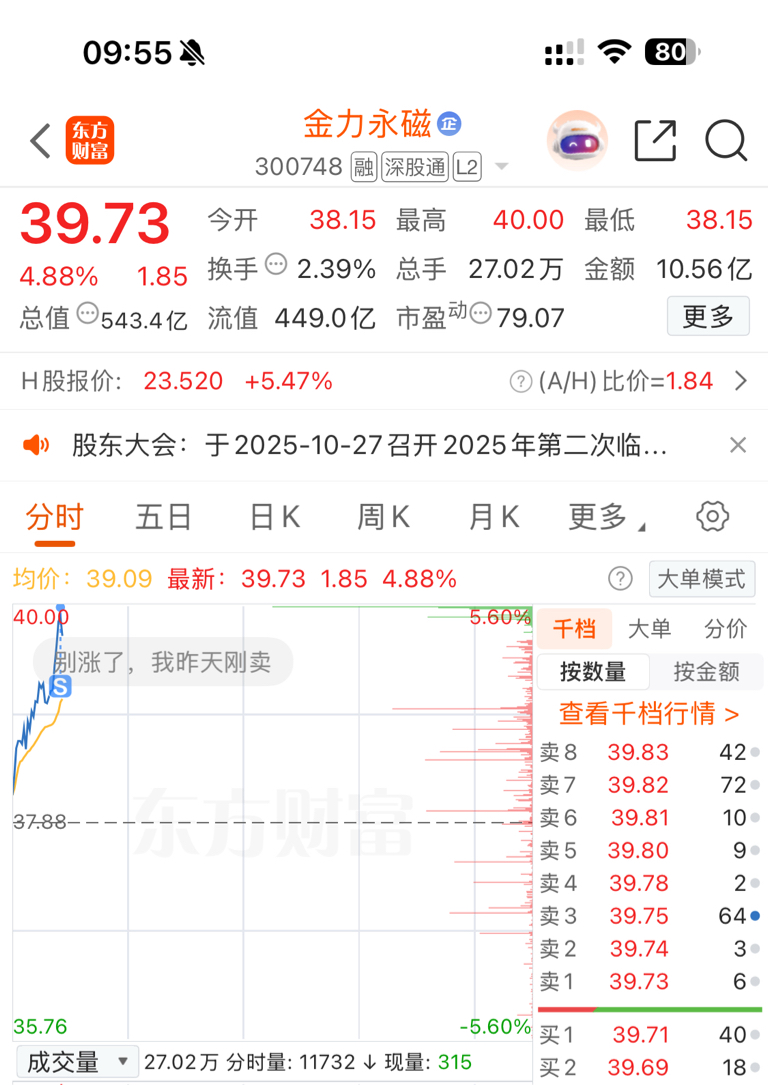$金力永磁(SZ300748)$ 挂的40居然让我成交了,昨天进的跑了。
