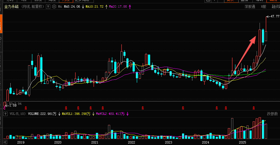 金力永磁这个月线,我只能说,修复了月线级别的乖离率,可以大大滴拉升、冲高了。。。