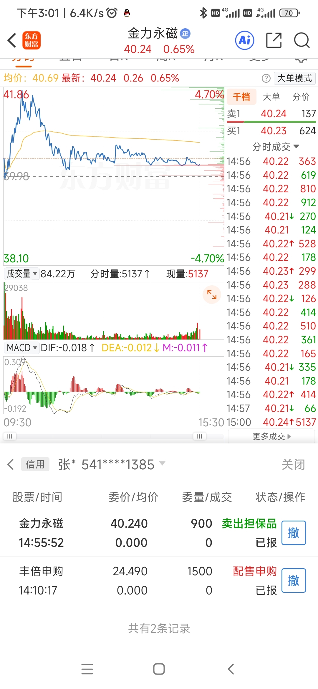 $金力永磁(SZ300748)$ 这什么情况,尾盘成交了5000多手,我55分下的单却没有成交?