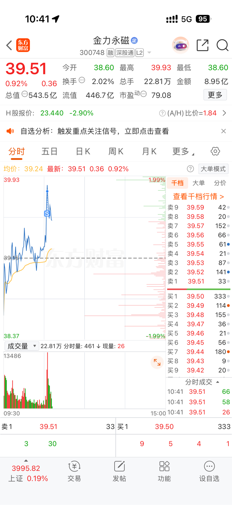 $金力永磁(SZ300748)$ 拼手速出半仓