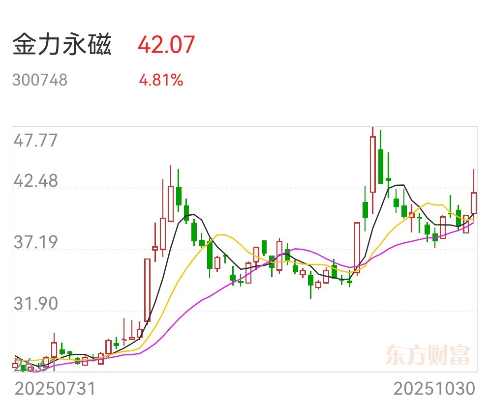 - 金力永磁:全球稀土永磁材料行业产销量龙头,其生产的含镝、铽重稀土的钕铁硼永磁体,是美国军工装备电机系统的核心部件,直接用于军机发动机、导弹制导系统等关键领域。2025年前三季度对美出口销售收入达3.54亿元,同比增长43.92%,且已获得出口管制下的相关许可资质,持续稳定供应美国军工产业链。