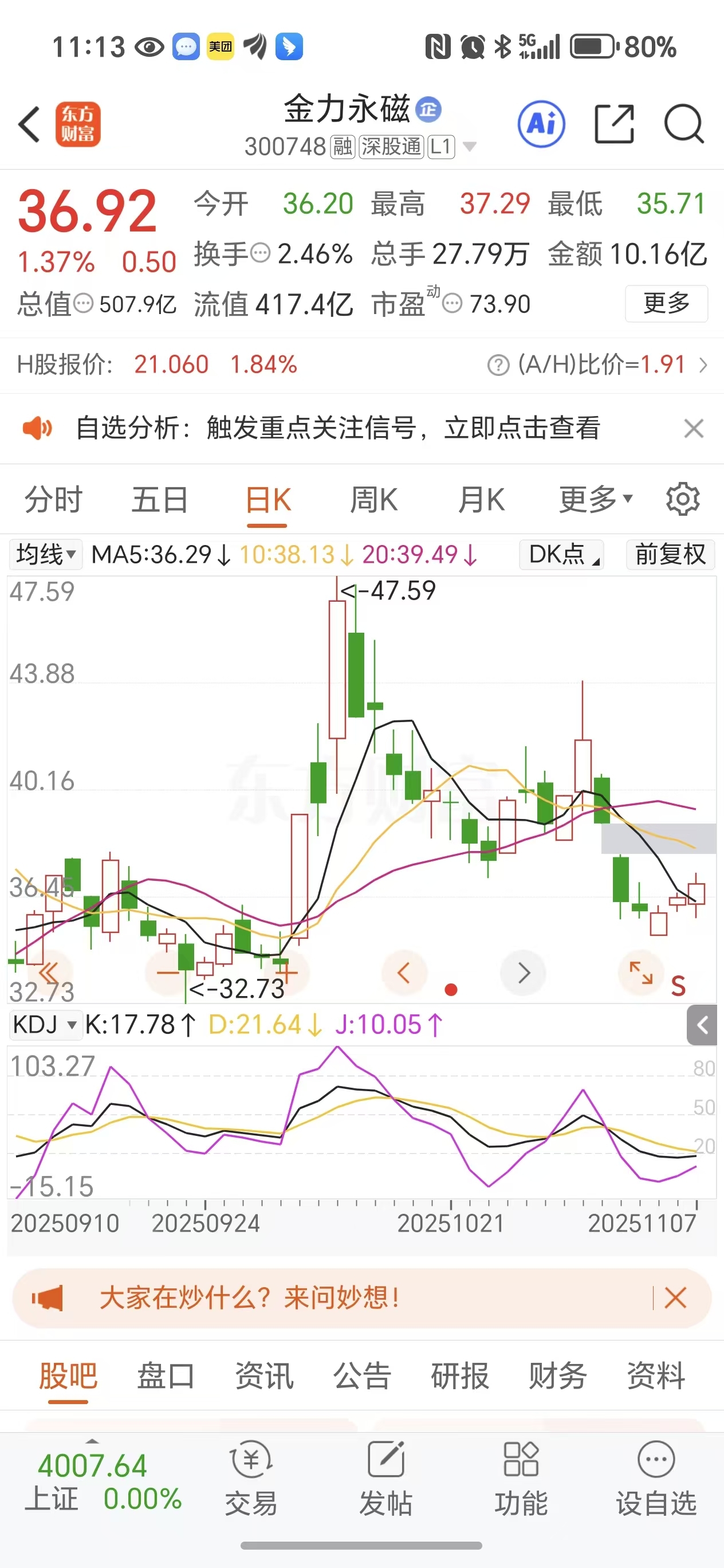 日线KDJ准备金叉,多头信号已显,准备进入强势反弹