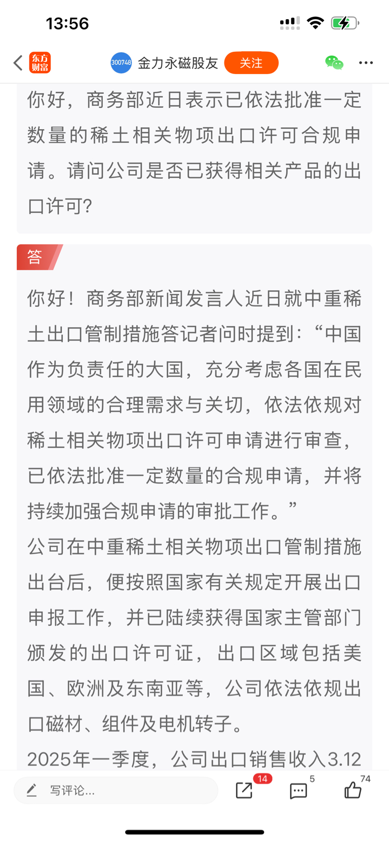 $金力永磁(SZ300748)$ 稀土出口许可证