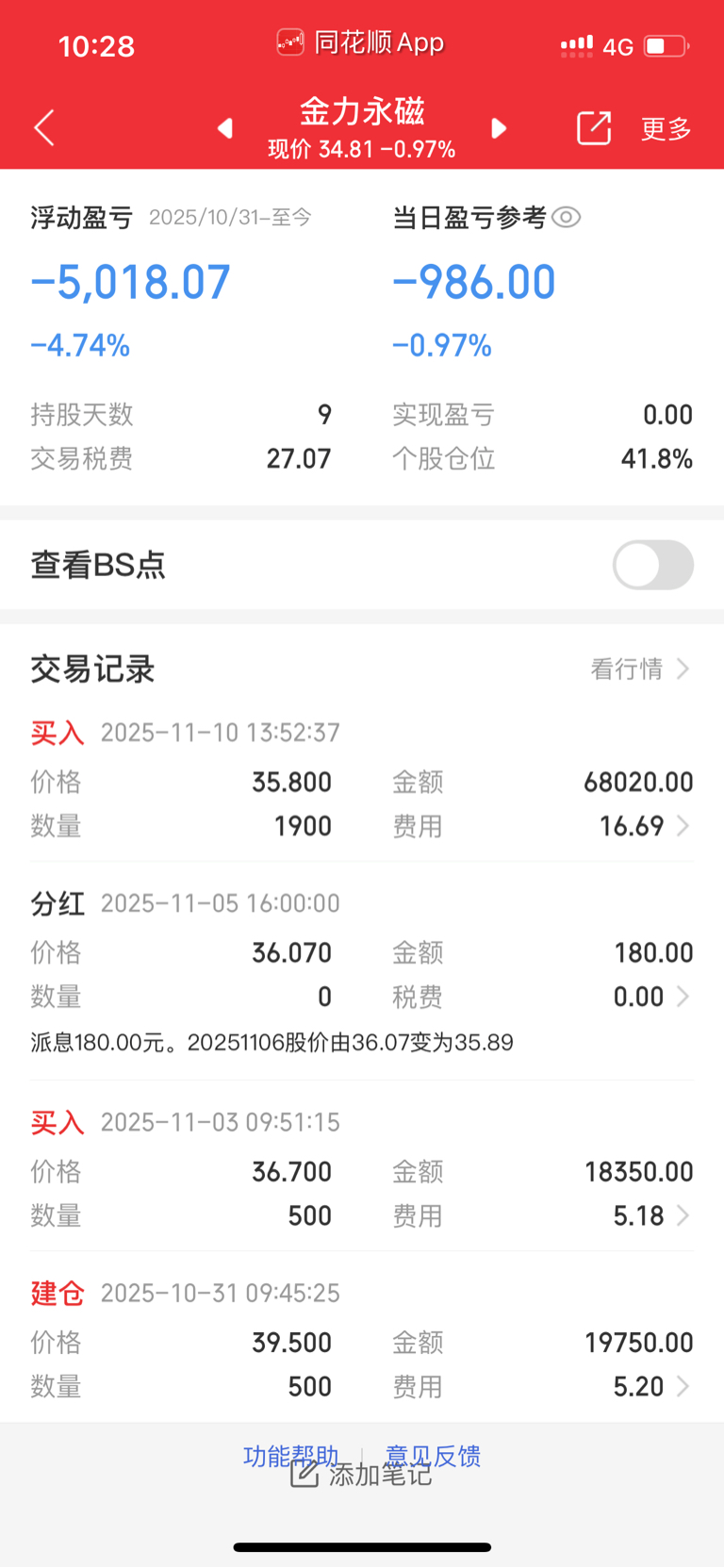 $金力永磁(SZ300748)$ 36.6成本,还能回本,还是真炒股尽头就是回本,