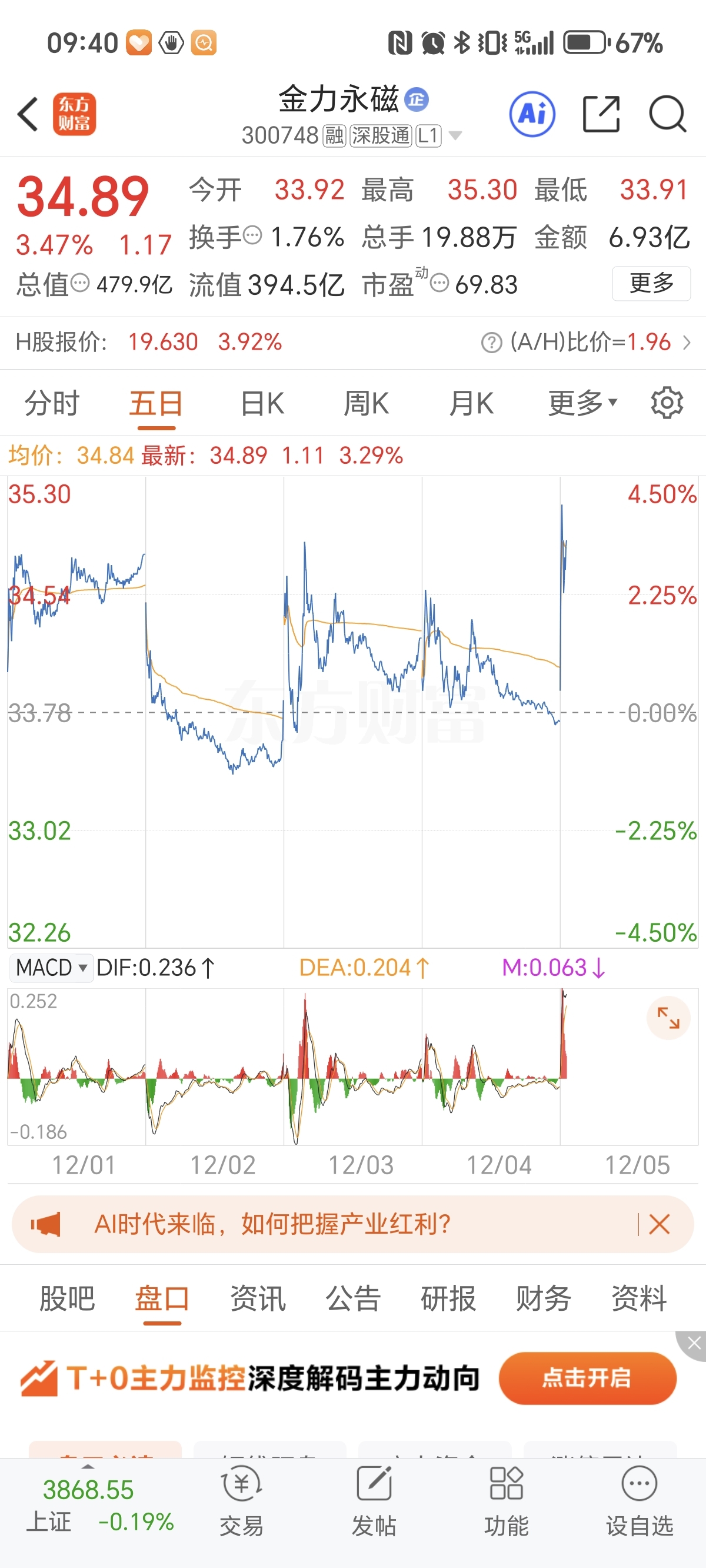 $金力永磁(SZ300748)$ 今日放大量,退可守,进可攻的一只股