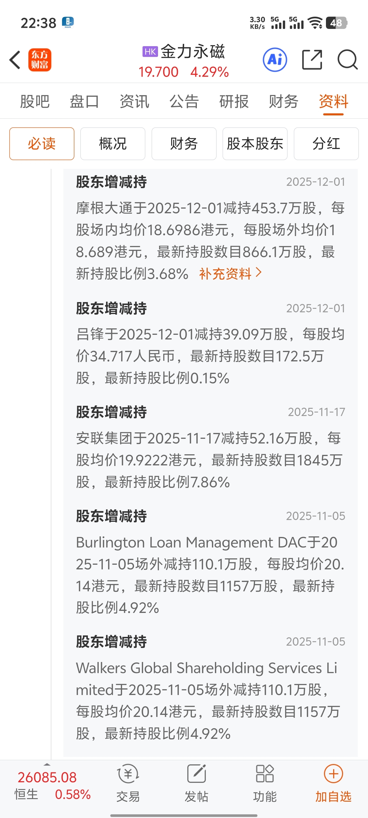 $金力永磁(SZ300748)$ 港股在减持,A股也在减持。都在套现离场吗?周一该怎么操作呢?