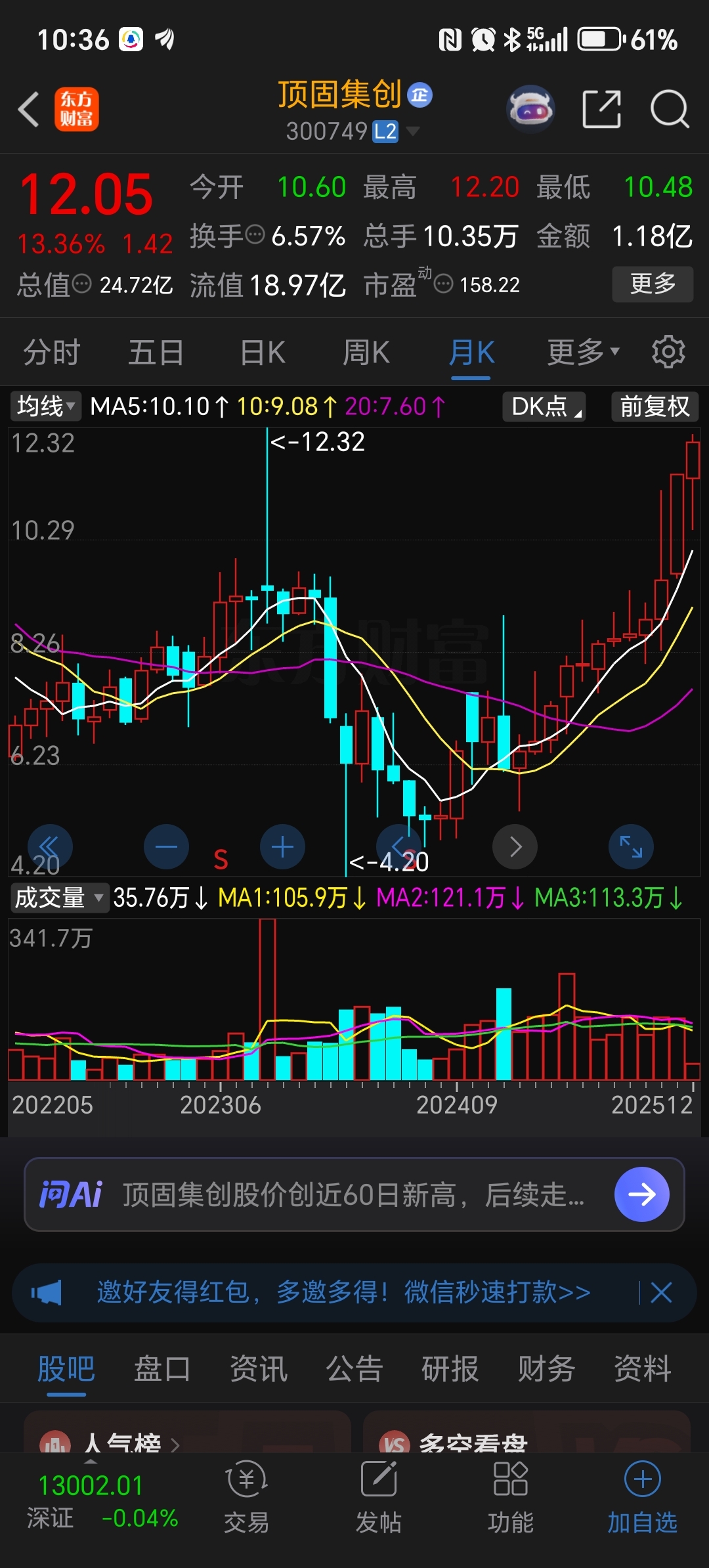 $顶固集创(SZ300749)$ 月K十二连阳!涨了一年啊