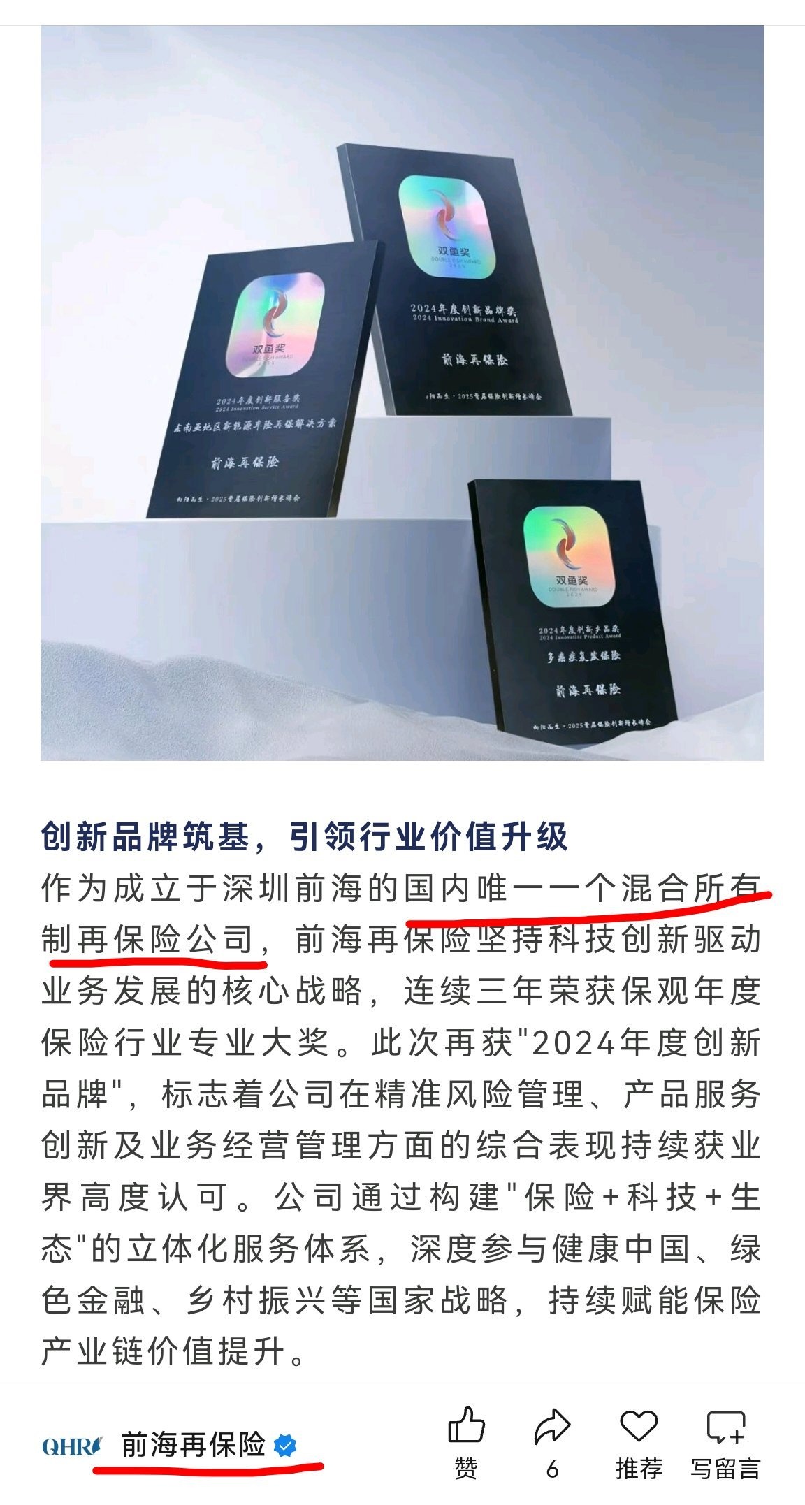 超越周期绑定国家战略:通过持股前海再保险(占比10.5%),公司深度切入健康中国、绿色金融等国家长期战略赛道。前海再保险作为国内唯一混合所有制再保险公司,近期在硼中子抗癌疗法保险、新能源车险出海等创新领域持续突破,精准契合金融监管总局《健康保险高质量发展指导意见》方向。