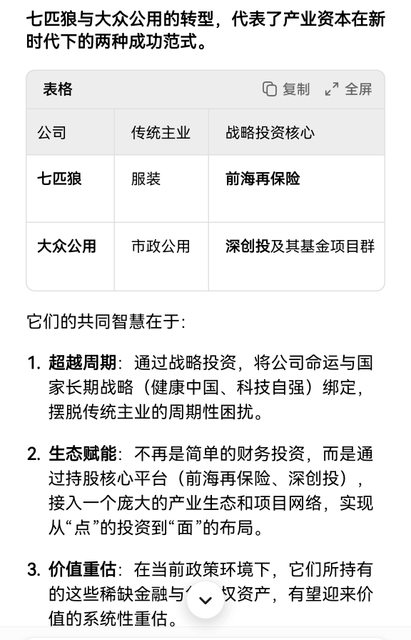 七匹狼与大众公用的案例共同揭示了一条转型路径:通过战略持股核心金融平台,传统企业可升级为赋能型产业资本。七匹狼的核心竞争力在于: