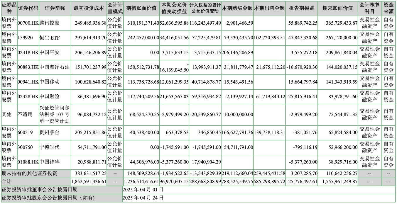 证券投资精准捕捉龙头红利:2025年上半年公司证券投资收益达1.26亿元,重仓腾讯控股(单笔盈利5500万元)、宁德时代、中国海油等高股息龙头股。在A股市场回暖背景下,公司将投资额度提升至20亿元,进一步扩大收益空间。