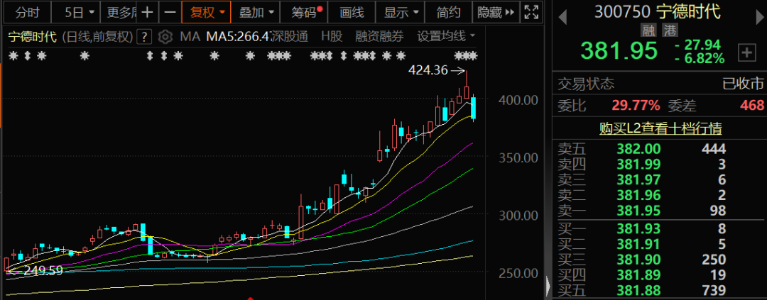 截至10月10日收盘,宁德时代股价为381.95元/股。今年以来,宁德时代股价上涨47.7%。