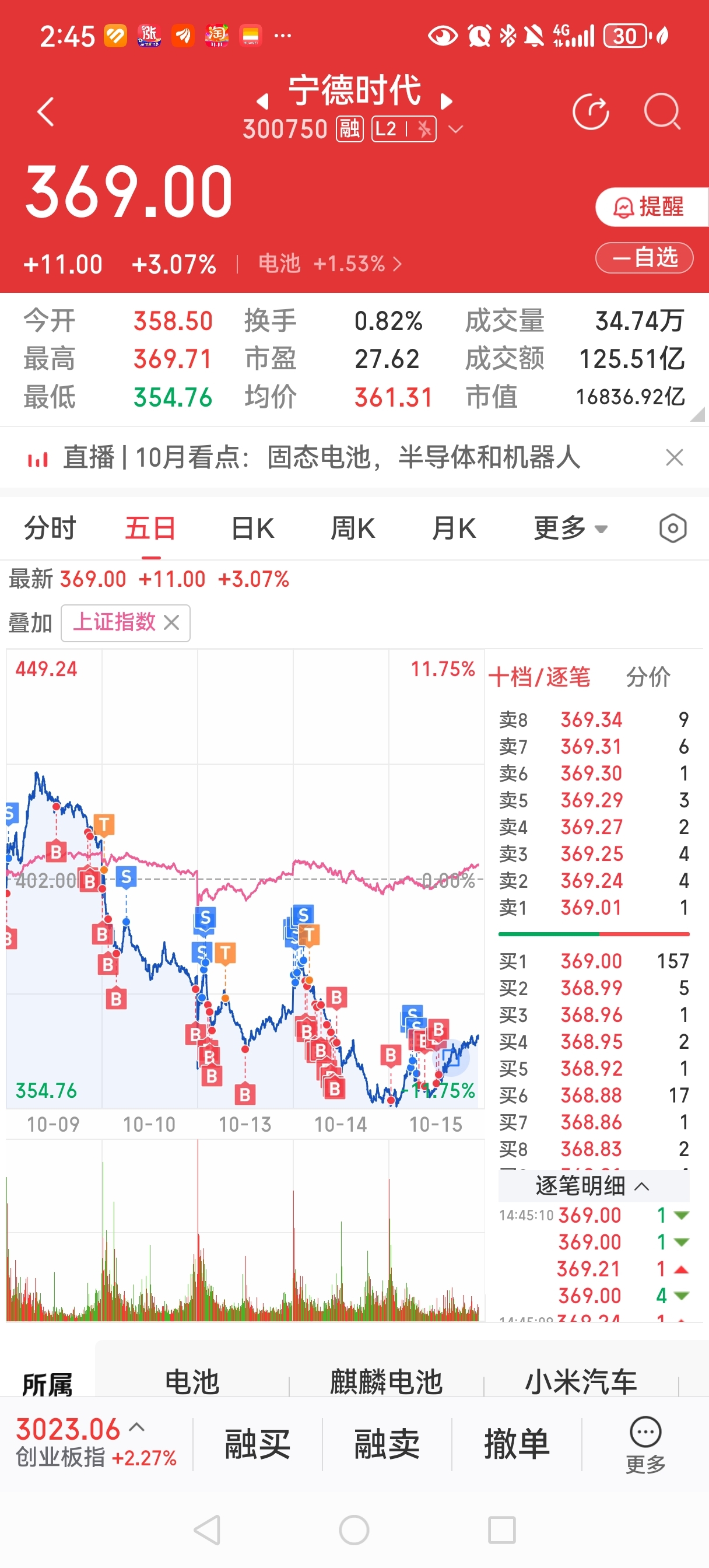 $宁德时代(SZ300750)$ 最近宁德做的不错,每天能t一个点,估计虽然跌了不少,但是利润没怎么损失,哪天爆拉估计我又卖飞了
