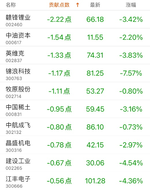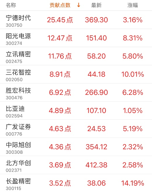 指数贡献榜:宁德时代贡献25.45点