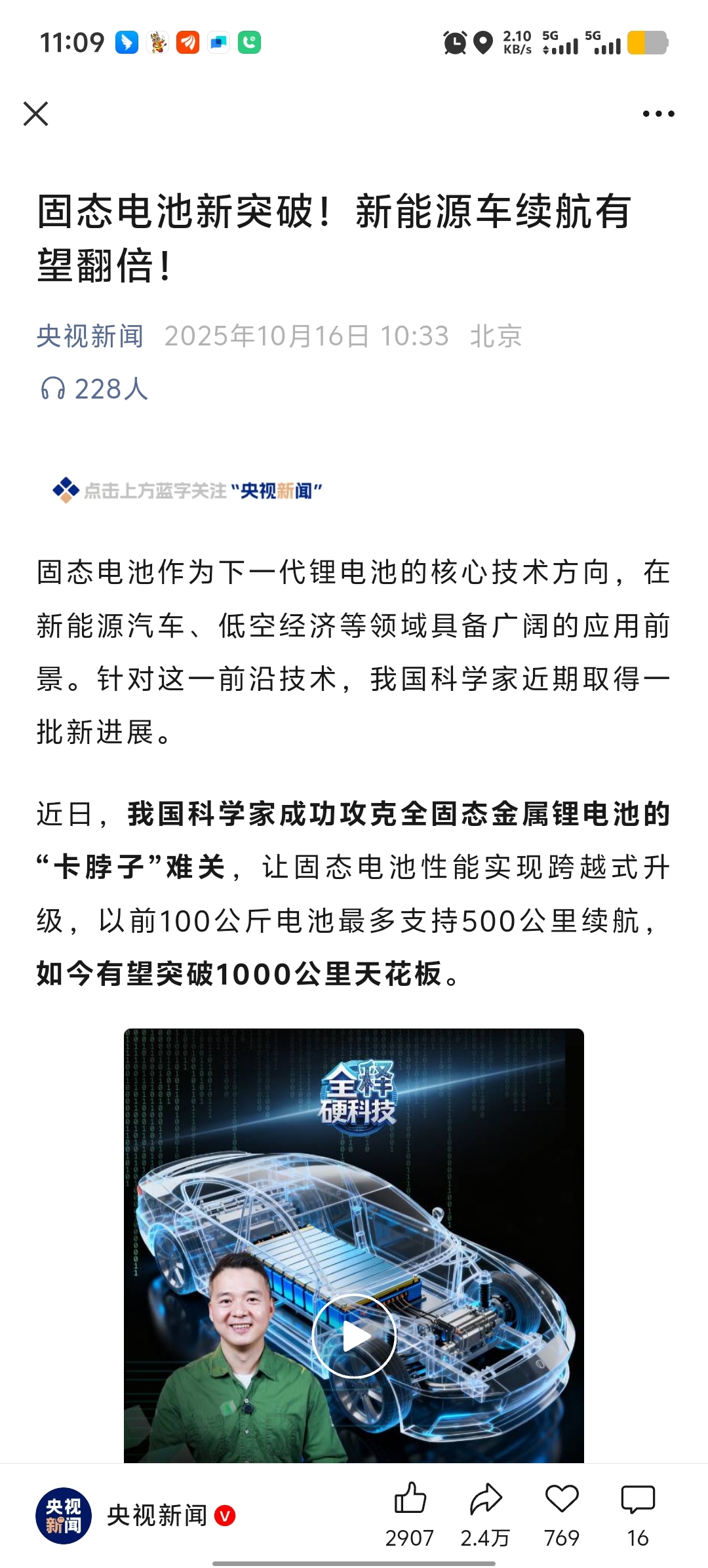 $宁德时代(SZ300750)$ 固态电池有望超1000公里