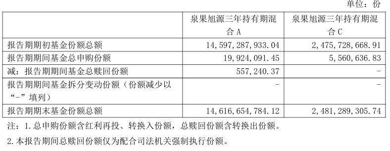 值得一提的是,截至今日,泉果旭源三年持有期混合成立以来刚好满3年,基金从下周一开始开放赎回。在过去两个季度,记者注意到,该基金已有部分份额被提前赎回,这部分赎回份额为配合司法机关强制执行的份额。
