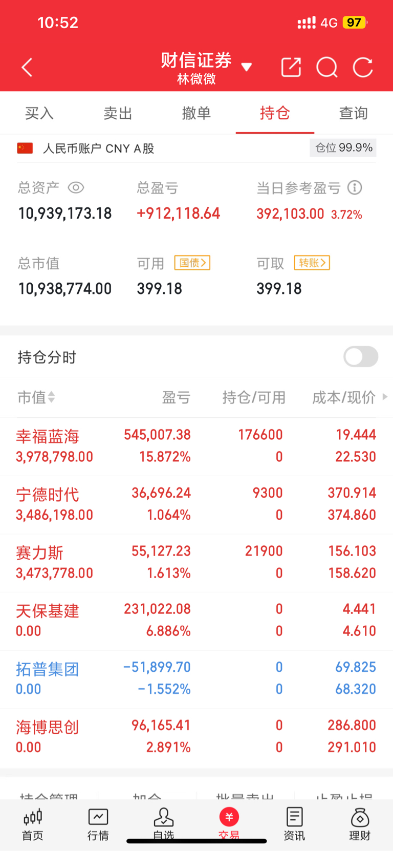 今日入场 $宁德时代(SZ300750)$ $幸福蓝海(SZ300528)$ $赛力斯(SH601127)$ 这三支具备增长潜力,我满怀期待,相信随着后续市场的发展,达成盈利目标。