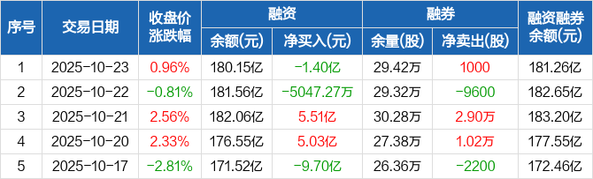 宁德时代:融资净偿还1.4亿元,两市排名第11(10-23)