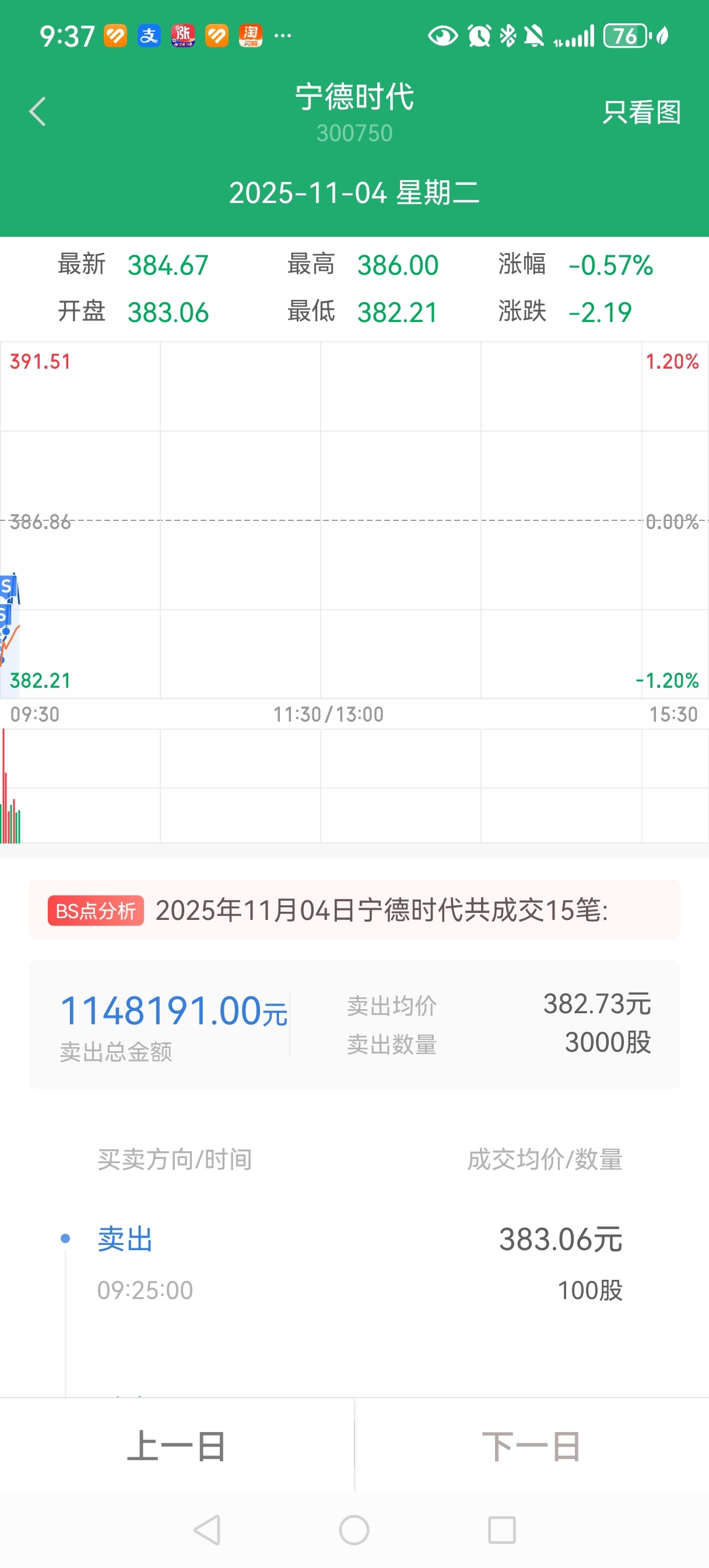 $宁德时代(SZ300750)$ 实盘,2025-11-4最低点清仓,祝好