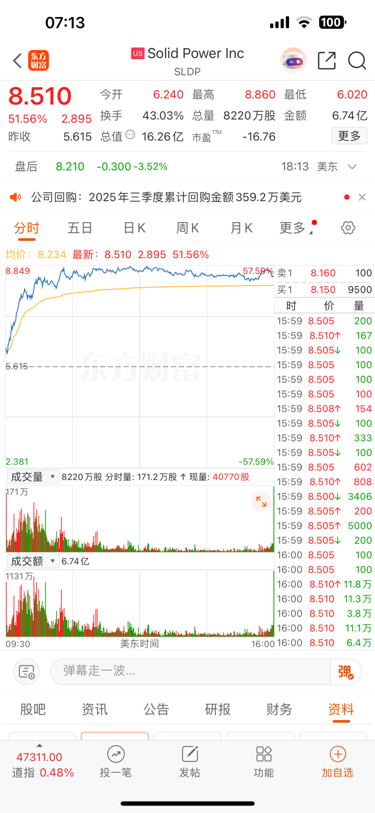 $宁德时代(SZ300750)$ 美股固态电池龙头大涨52%,今天宁德时代带领大盘大涨